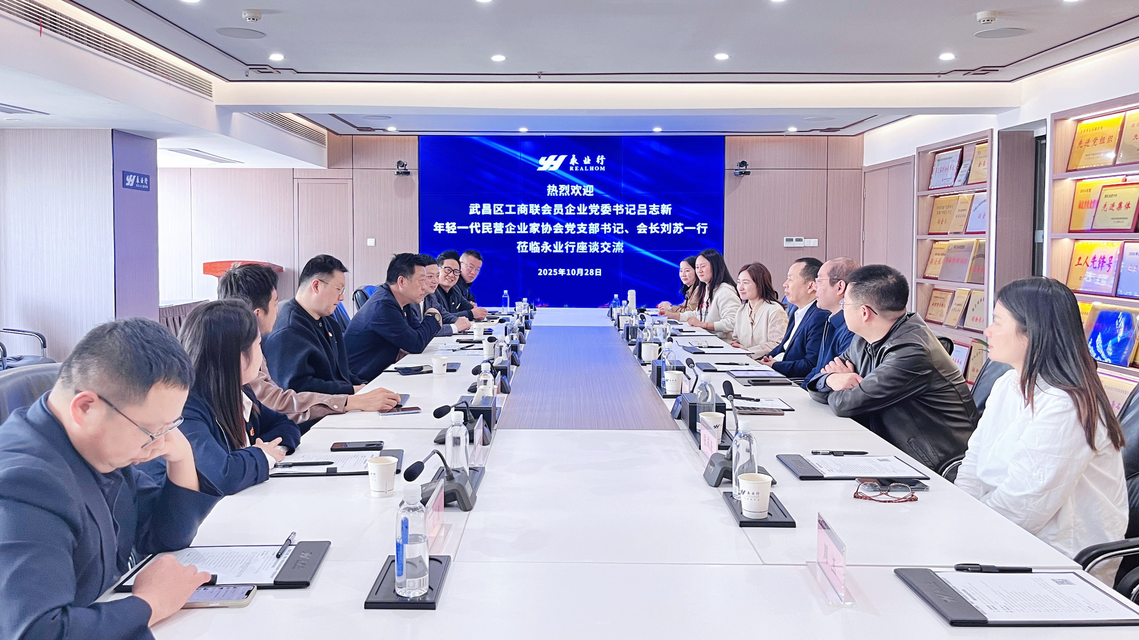 武昌区工商联、年轻一代民营企业家协会领导一行莅临永业行座谈交流 2025-10-29 2025年10月28日,武昌区委统战部副部长、区工商联党组书记、会员企业党委书记吕志新,武昌区年轻一代民营企业家协会党支部书记、会长刘苏一行莅临永业行,就党建工作开展座谈交流。永业行党委书记、董事长潘世炳,执行总裁吴学锋,副总裁雷小明热情接待并参加座谈。 参会一行领导首先参观了永业行水岸国际办公区,详细了解永业行的发展沿革、创新研发、典型案例、永业行、党建阵地建设等。 吕志新在座谈中对永业行的党建工作水平和成果给予了高度肯定。他强调,武昌区一直非常重视并支持各基层党组织的党建工作发展,他希望以此座谈交流为契机,发挥武昌区工商联的桥梁纽带作用,进一步强化各基 MORE