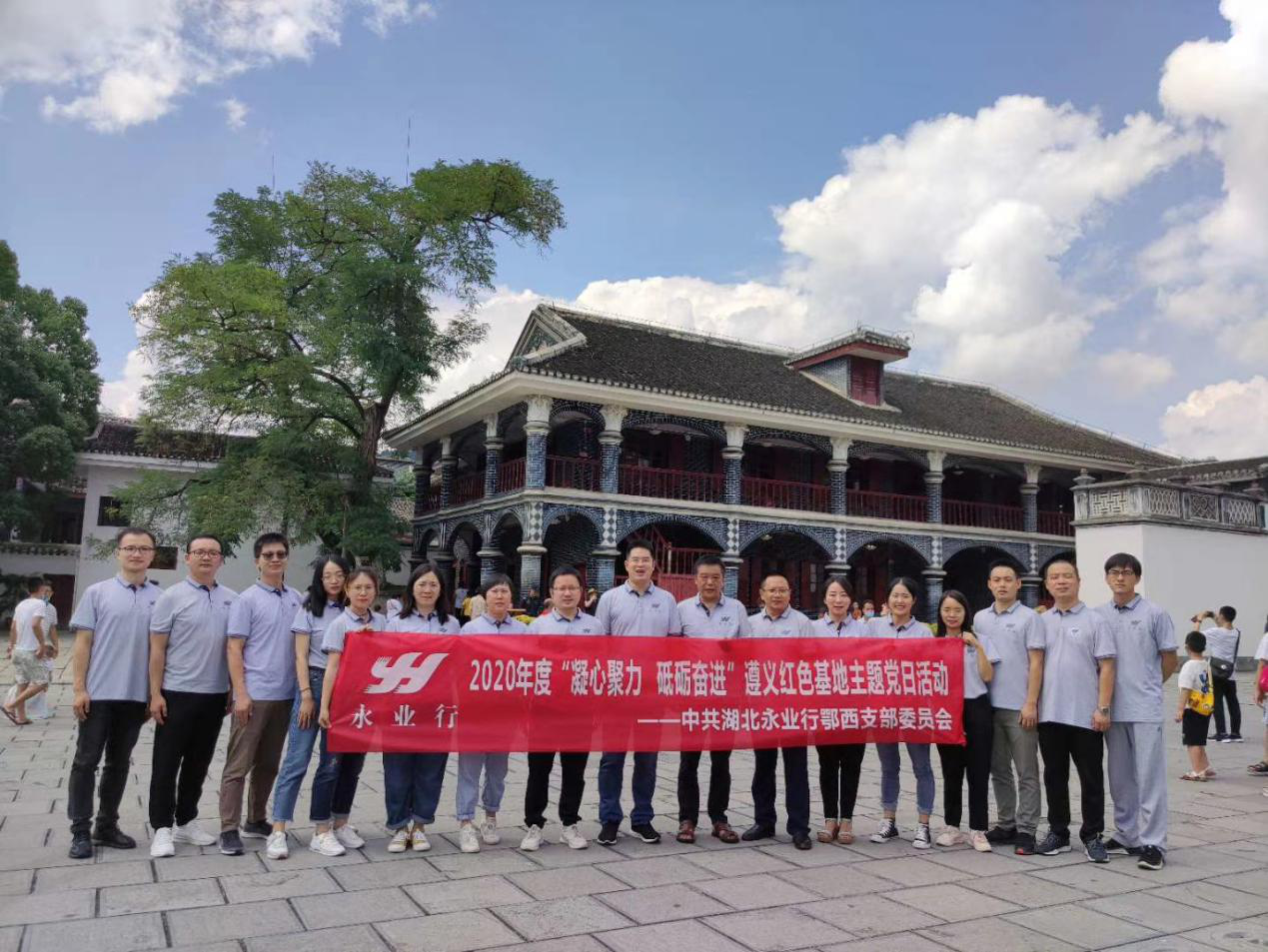 永业行鄂西支部赴遵义开展“凝心聚力 砥砺奋进”主题党日活动 2020-08-03 为进一步增强支部党员的党性修养,提高支部队伍凝聚力,8月1日,永业行鄂西党支部书记、总经理雷小明带领班子成员及支部党员一行17人,赴红色圣地遵义开展2020年度“凝心聚力 砥砺奋进”主题党日活动。 活动中,全体人员参观了遵义会议会址,了解了会议召开的背景、起因、经过及意义,深刻领会了遵义会议集中体现的实事求是、独立自主、坚定信念、敢创新路、民主团结精神。接着,大家到息烽集中营革命历史纪念馆,在解说员的带领下,聆听革命先烈的光辉事迹、缅怀革命先烈的丰功伟绩,学习革命先烈的无畏精神。       在随后召开的党支部组织生 MORE