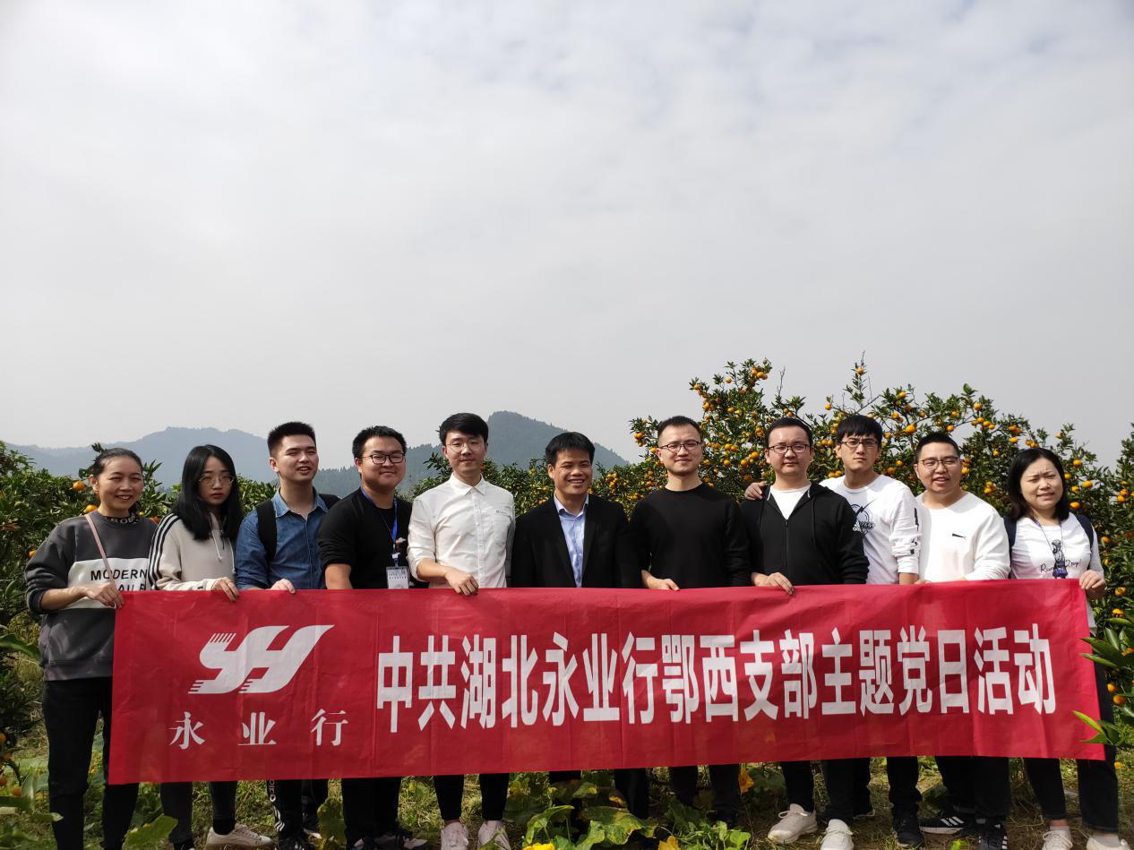 永业行鄂西党支部参加“柑橘传递,温暖相随”采摘活动 2020-10-24 10月24日,永业行鄂西党支部参加了三峡大学材料与化工学院举办的“柑橘传递,温暖相随”采摘活动。鄂西党支部组织委员赵智伟带领支部党员前往宜昌市点军区艾家镇参与橘子采摘。            秋风飒爽,硕果累累。在橘农的带领下,全体成员深入田间地头,积极采摘成熟的柑橘,大家忙得不亦乐乎,好一片繁忙又热闹的情景。最后,鄂西区共购买一千多斤蜜橘,并将善款交给橘园农户。     此次党日活动形式新颖,意义重大,让党员用实际行动积极践行社会责任。全体党员 MORE