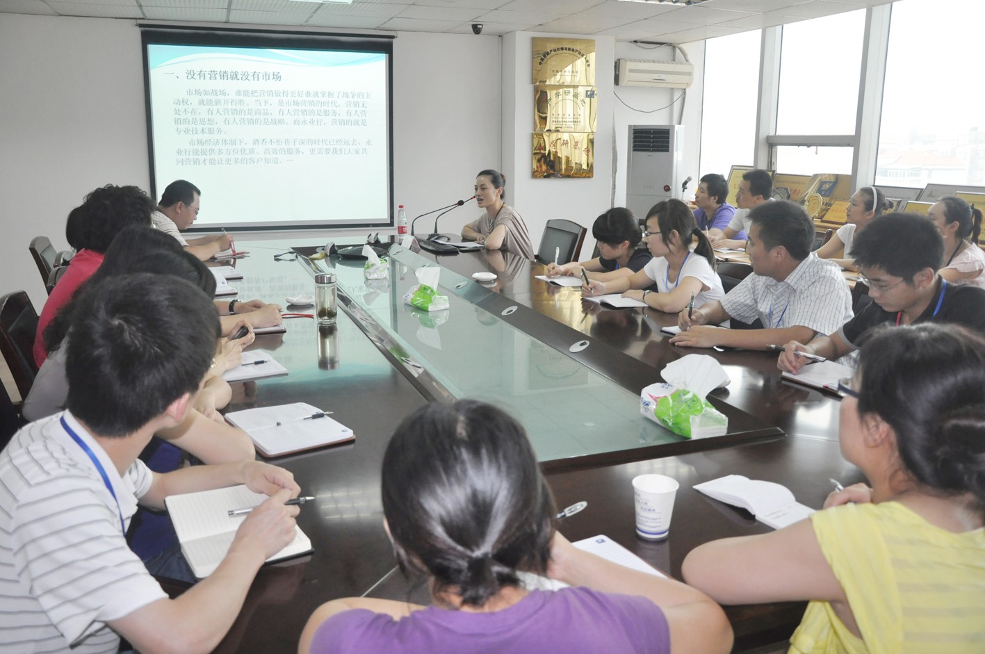 6月21日,助理总裁王琴在武汉总部会议室为大家上了一堂生动的市场营销课,来自武汉总部、各分部的50多名员工采取现场参与、通过电话会议系统学习等方式共同参加了培训。