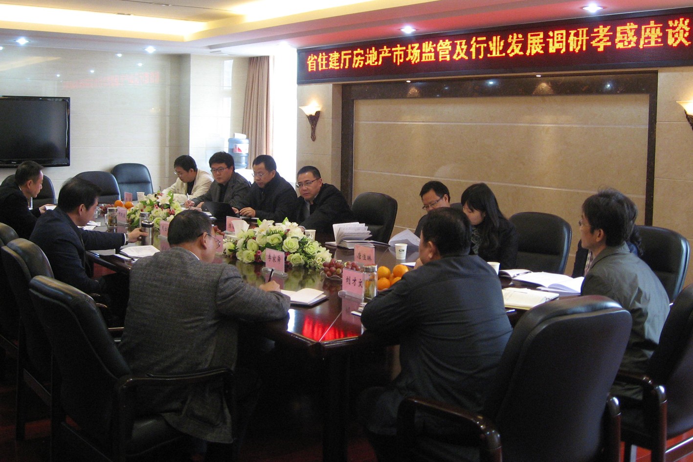 调研组成员包括:省住建厅房地产市场监管处处长陈浩泉,办公室副主任张明豪、主任科员王南及永业行总裁潘世炳,研究院副总经理唐佳林、助理总经理姚舜等。在15日上午于孝感乾坤大酒店召开的座谈会上,孝感市住房保障和房屋管理局党组书记、局长周仕刚,副局长何晓波、高乔明、李家舜,调研员赵小平等就2012年度孝感市房地产运行情况向调研组作了汇报。陈处长和潘总分别就促进孝感房地产业健康发展的具体举措提出了各自见解。下午,在孝感市住房保障和房屋管理局相关领导陪同下,调研组对孝感市保障性住房、高端住宅区、普通住房以及商业地产等类型的典型楼盘建设情况进行了现场考察。