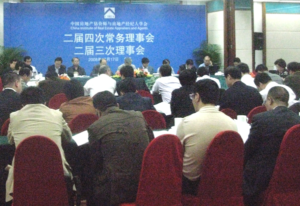 10月17日,中国房地产估价师与房地产经纪人学会(以下简称“中房学”)二届三次理事会在北京召开,会议由建设部原副部长、中房学会长宋春华主持。会议议题包括三个方面:一是由中房学秘书长柴强介绍二届二次理事会以来的工作,二是讨论下阶段工作重点,三是审议通过资深会员评定实施办法。来自全国各地和港澳的理事及代表近100人参加了理事会。永业行总裁潘世炳作为中房学理事参加了会议。
