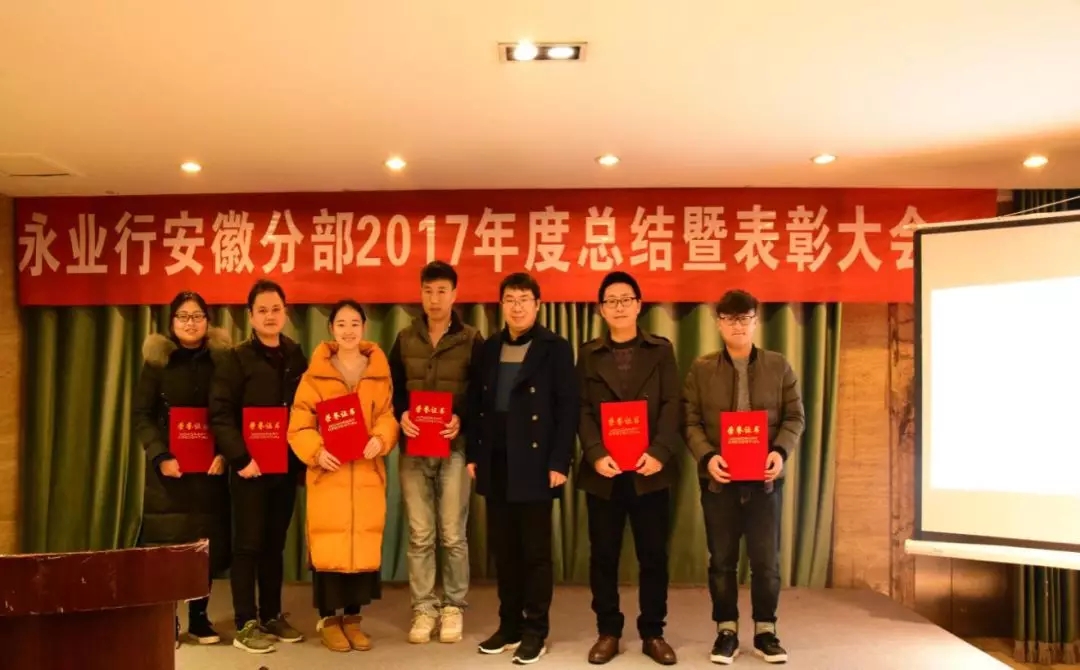 会议伊始,永业行安徽分部总经理严建国通过对2017年工作的总结,带领大家一起回顾过去一年取得的成绩,反思工作中发现的问题,并借此机会总结经验、积累教训,为在新的一年里顺利工作打好基础。会议对2017年度先进个人进行了表彰,杨帆、鲍广锐等6人获得安徽分部“先进工作者”荣誉称号。