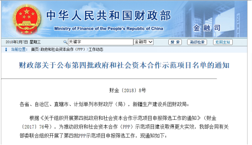 近日,财政部公布第四批政府和社会资本合作示范项目名单,共计入选396个项目,其中,永业行承担全过程咨询的4个PPP项目获入选。