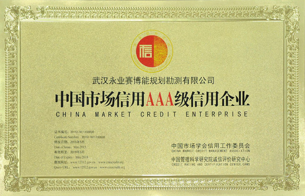 中国市场信用AAA级信用企业—武汉永业赛博能规划勘测有限公司