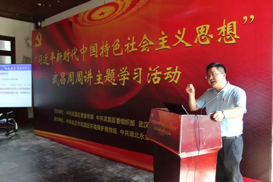 8月10日上午,“习近平新时代中国特色社会主义思想”武昌周周讲主题学习活动在武汉革命博物馆(中共五大会址纪念馆)举办。本次活动由中共武昌区委宣传部、组织部,武汉革命博物馆主办,中共武汉市武昌区环境保护局党组、中共湖北永业行委员会承办。区委常委、区委组织部部长胡太荣,区委常委、区委宣传部部长王兴文,副区长黄丰宙,区纪委监委派驻区市场监管局纪检监察工作组组长潘菱出席活动,区环保局全体党员干部、永业行董事长兼总裁潘世炳、执行总裁王琴、副总裁雷小军、刘晓峰及50余名党员代表参加活动。区环保局党组书记汪火应主持活动。