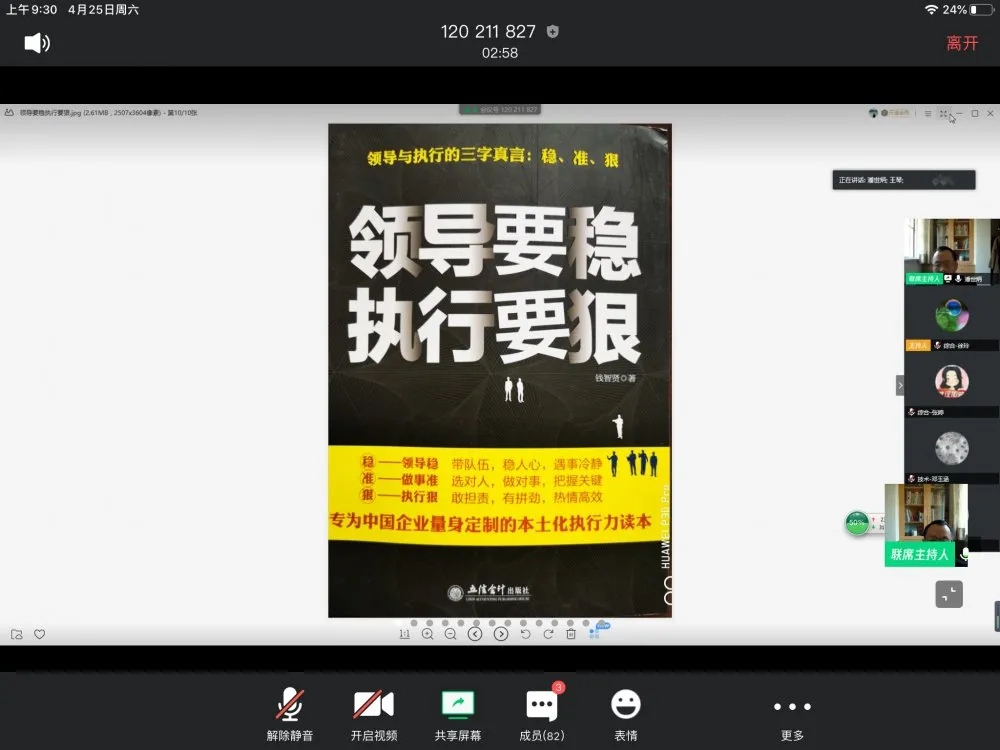 4月25日上午,永业行组织召开高管扩大会暨世界读书日读书分享线上会议,来自总、分部百余人通过腾讯会议APP参会。