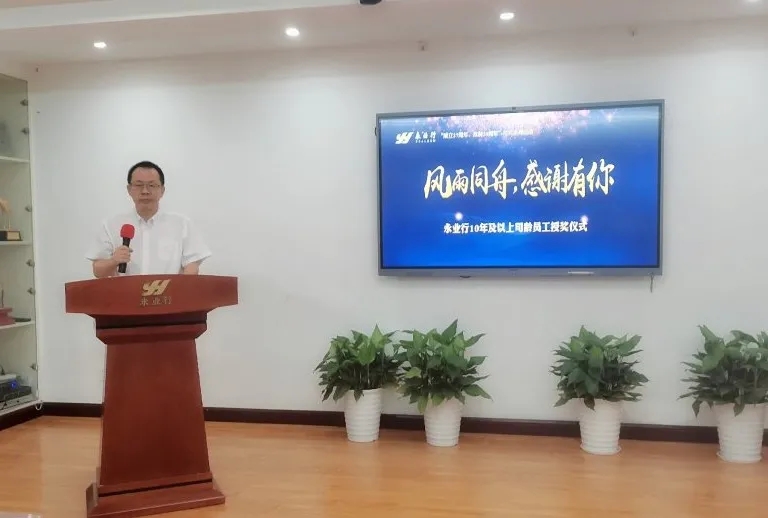 潘世炳在致辞中回顾了永业行从改制创立到发展壮大的历程,从改制之初的8个人到现今的1100余人;从武汉起步,拓展湖北,征战北京、贵州、海南、安徽等20余个省市,服务地域覆盖全国;从单一的土地评估到价值评估咨询、自然资源咨询、投资咨询、生态环境咨询等四大业务板块,实现了多专业融合发展,成为勇担社会责任的品牌企业,并代表公司董事会向为公司发展付出艰辛劳动的全体员工及家属致以崇高的敬意和衷心的感谢!他强调了永业行的战略方向,勉励受表彰人员珍惜司龄荣誉,永葆奋斗本色,继续弘扬创新改革的光荣传统和敢于争先的优良作风,不断深化业务创新、管理创新、结构创新,继续为实现“大后方、大中台”的管理战略目标做出新的贡献。