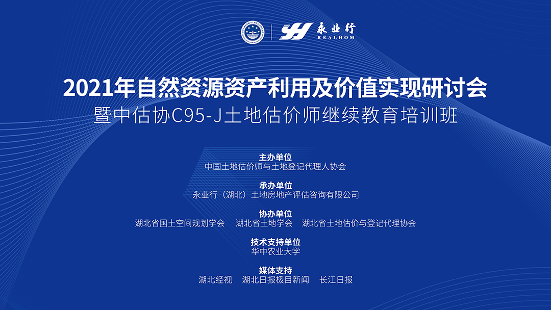 2021年10月15日,由中国土地估价师与土地登记代理人协会主办、永业行承办的“2021年自然资源资产利用及价值实现研讨会暨中估协C95-J土地估价师继续教育培训班”在汉召开。会议以“自然资源资产利用及价值实现”为主题,邀请了专家学者共同探讨生态文明理念下自然资源价格评估、自然资源资产利用、生态产品价值实现的新路径,助力政府平台公司转型升级,推动县域经济高质量发展。