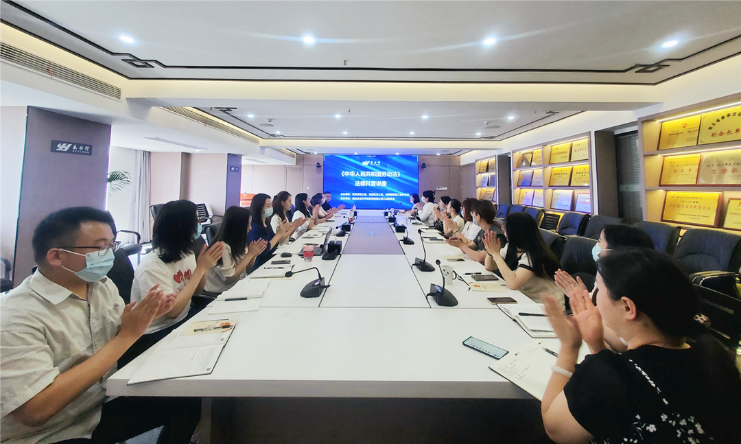 6月16日下午,由武汉市总工会、武昌区总工会、徐家棚街道工会联合会主办,永业行工会承办的《中华人民共和国劳动法》法律科普讲座在水岸国际办公区会议室举行。此次讲座邀请了资深律师周福生担任主讲人,旨在增强员工的法治意识,深化依法治企工作,帮助员工进一步熟悉劳动法,形成学法、懂法、守法、用法的良好氛围。来自总、分部的50余名管理人员和人事条线员工通过线上和线下的方式参加讲座。