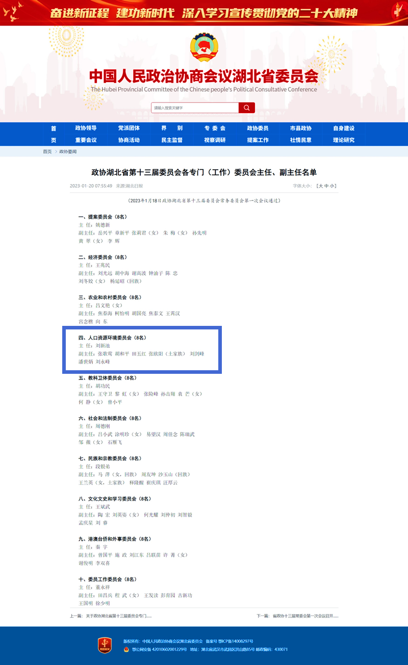 永业行潘世炳当选为政协湖北省第十三届委员会人口资源环境委员会副主任
