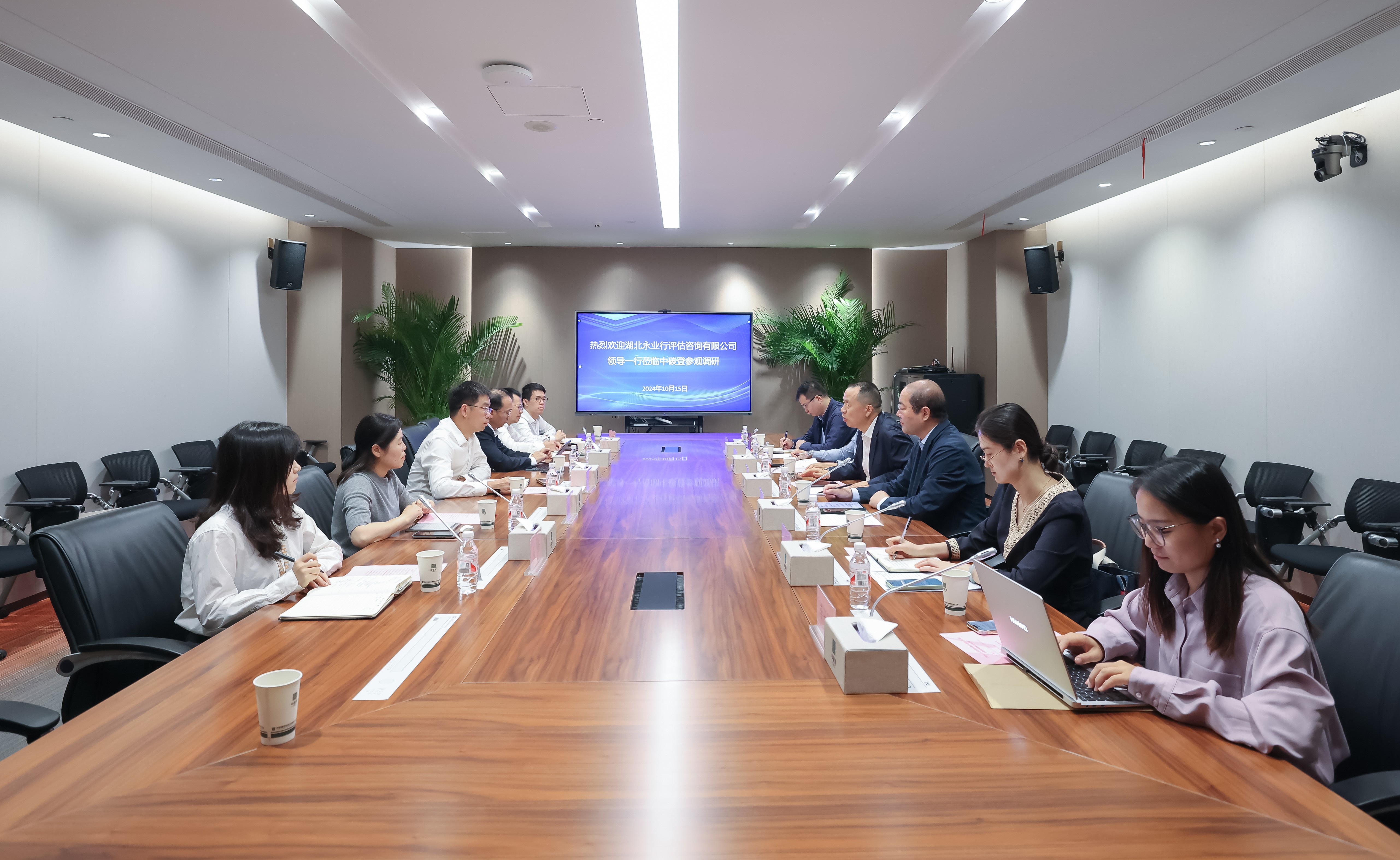 2024年10月15日,永业行党委书记、董事长潘世炳一行拜会中碳登党委书记、董事长尹俊等领导,就绿色转型发展及双碳业务拓展等方面开展交流。中碳登党委委员、副总经理汪令新,永业行党委委员、常务副总裁吴学锋等参加座谈。