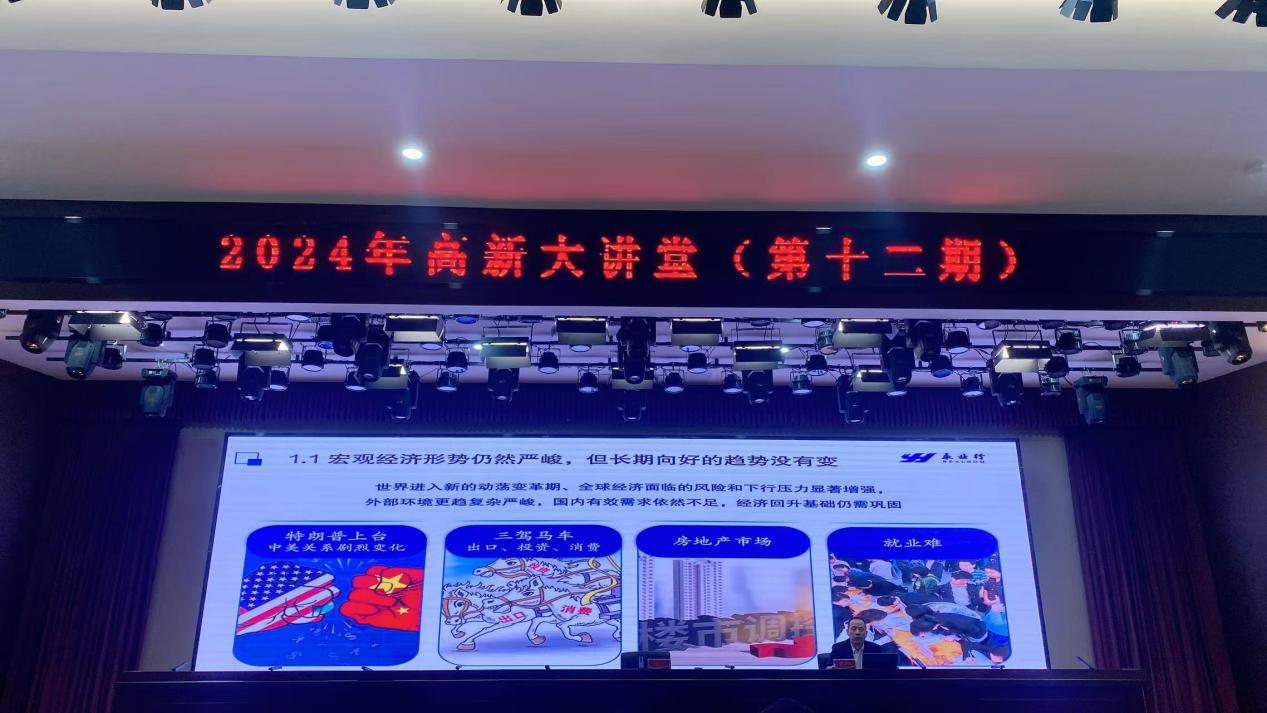 2024年12月5日,孝感高新技术产业开发区(下称“孝感高新区”)组织召开2024年“高新大讲堂”第十二期活动,孝感高新区党工委副书记、管委会主任舒俊主持会议。永业行董事长潘世炳受邀作“抢抓政策机遇 推动高质量发展”专题授课。