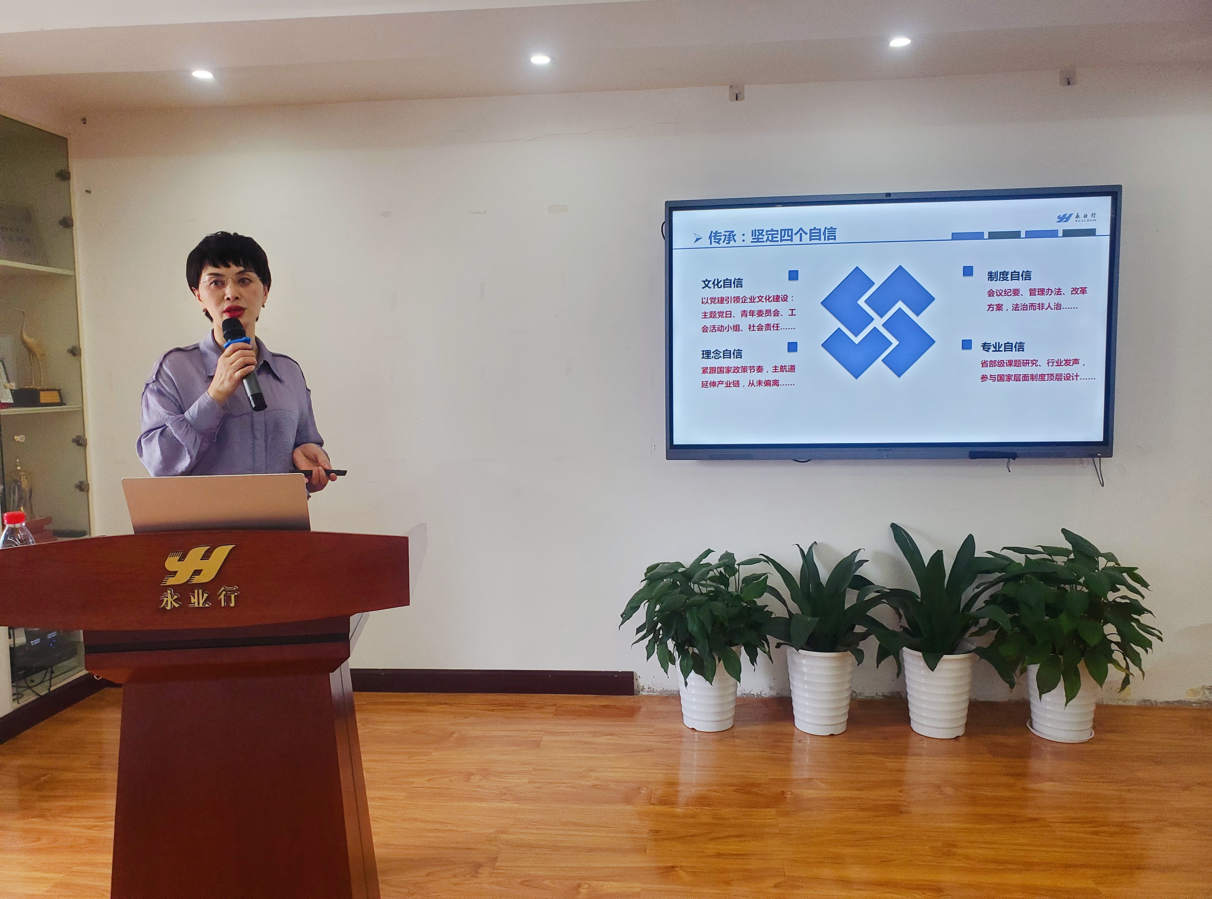 若要融入企业,必须要认同文化。轮值总裁王琴结合企业发展历程,从“文化自信、制度自信、理念自信和专业自信”四个维度阐述永业行的文化传承,进一步诠释了永业行人“倡导责任评估,共建和谐社会”的初心和使命。勉励新员工在新时代的发展征程中,振翅翱翔、凝聚力量。
