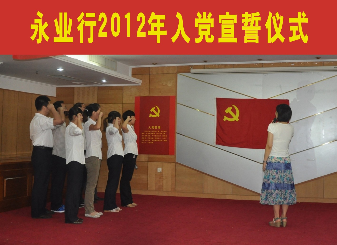 本次宣誓仪式在湖北消防招待所隆重举行,永业行党委全体成员和公司非党人士高管、副总经理及以上职务人员参加了仪式。党委副书记靳剑辉担任仪式主持人并向新入党的同志表示祝贺。在领誓人杨雪莲的带领下,国土事务部总经理吴学锋、矿产评估部副总经理孙宇、技术部副总经理李尚平、十堰分部助理总经理王美、黄石分部高级经理朱双双、房地产评估一部经理王建波、孝感分部经理吴贤玲、地矿咨询一部助理经理张忠超等8名新党员举右手握拳并面向党旗宣读入党誓词。新党员宣誓后,党委副书记靳剑辉代表党委对他们提出要求,希望新党员在各自岗位上加倍努力工作,充分发挥党员的先锋模范作用,无愧于共产党员的光荣称号。