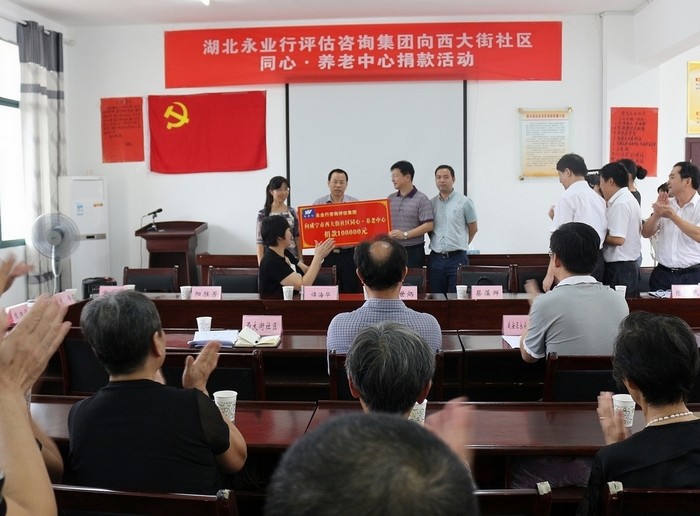 活动由咸宁市委统战部常务副部长陈冬民主持。捐赠活动开始后,永业行总裁潘世炳作为捐款方,向西大街社区负责同志卞洁递交了十万元捐款资金,并表示永业行会在今后进一步关注社区居民养老问题,努力承担更多的社会责任。湖北省委统战部副部长蔡藻鲜,咸宁市委常委、统战部长张方胜等发表了讲话,并一致认为这次捐款活动,既是一项关爱社区老年人的爱心善举,也是一项新经济组织服务社会民生的实践之举。捐赠活动结束后,大家去养老中心改造处进行了参观。