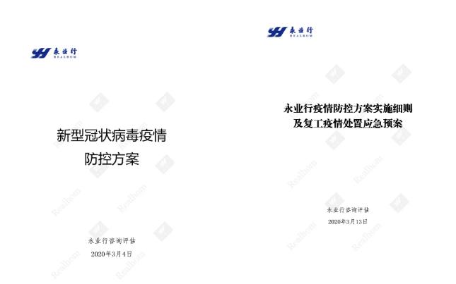成立疫情防控及复工工作领导小组,制定《永业行新型冠状病毒疫情防控方案》《永业行疫情防控方案实施细则》《永业行复工疫情处置应急预案》,对健康防护、场所消杀、办公制度、会议管理、员工返岗等工作再梳理、再完善、再部署,做到疫情防控有力、返岗复工有序。自1月23日起每日在线摸查员工健康安全情况,通过视频会议系统,在全司范围内开展疫情防控知识培训,并对办公场所、员工宿舍所进行检查、消杀,切实保障员工身体健康和生命安全。