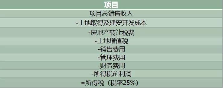 3、土地增值税:是对转让国有土地使用权、地上的建筑物及其附着物并取得收入的单位和个人征收的一种税。土地增值税按照纳税人转让房地产所取得的增值额和规定的适用税率计算征收,纳税人转让房地产所取得的收入减除《条例》规定的扣除项目金额后的余额,为增值额。它采用四级超率累进税率,应纳土地增值税=土地增值额×适用税率-速算扣除额×速算扣除率。其中:土地增值额=转让房地产总收入-扣除项目金额。计算扣除项目有:取得土地使用权所支付的金额;开发土地和新建房及配套设施的成本;开发土地和新建房及配套设施的费用;旧房及建筑物的评估价格;与转让房地产有关的税金;加计扣除。在实际测算过程中,为保持和企业实际情况一致,最好采用先预缴后清缴的口径计算折现值。
