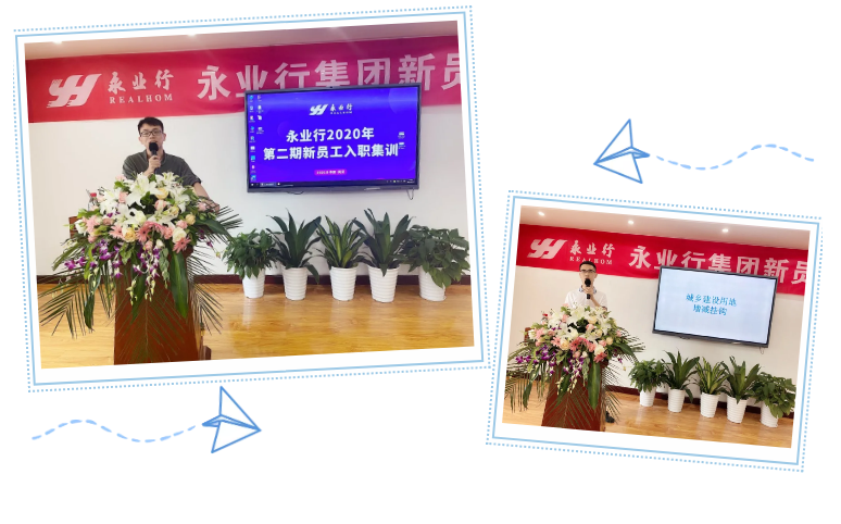 公司董事长、总裁潘世炳先生出席本次集训开营仪式,潘总首先代表公司欢迎新员工们加入永业行大家庭,并从专业驱动、敬畏市场、诚信和感恩四个方面提出明确要求。