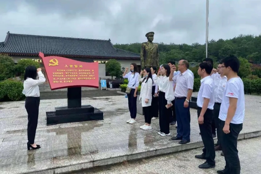 为庆祝中国共产党成立100周年,缅怀革命先烈,追寻红色记忆,6月19日,永业行孝感党支部组织全体正式党员、预备党员、入党积极份子、先进员工代表一行15人,冒着绵绵细雨,先后赴开国上将王新亭、刘震故里,以及打响“中原突围”(南路部队)第一枪的孝昌县磨山村,开展“庆建党百年 忆红色初心”主题党日活动。