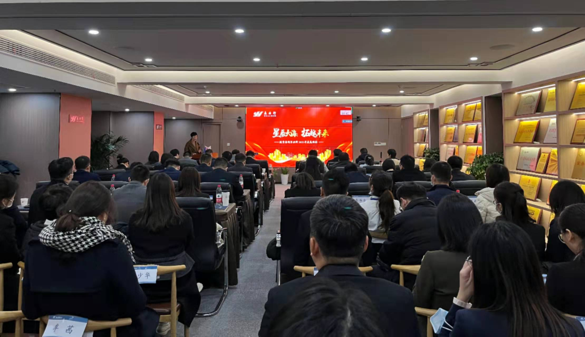 1月14日,永业行投资咨询事业群召开“星辰大海、拓越未来”2021年度总结会议。公司董事长潘世炳、轮值总裁王琴及公司高管、各职能部门负责人及代表、各兄弟部门负责人、投资咨询事业群及永业行中法城项目管理(武汉)有限公司全体员工线上线下共170人参加会议。