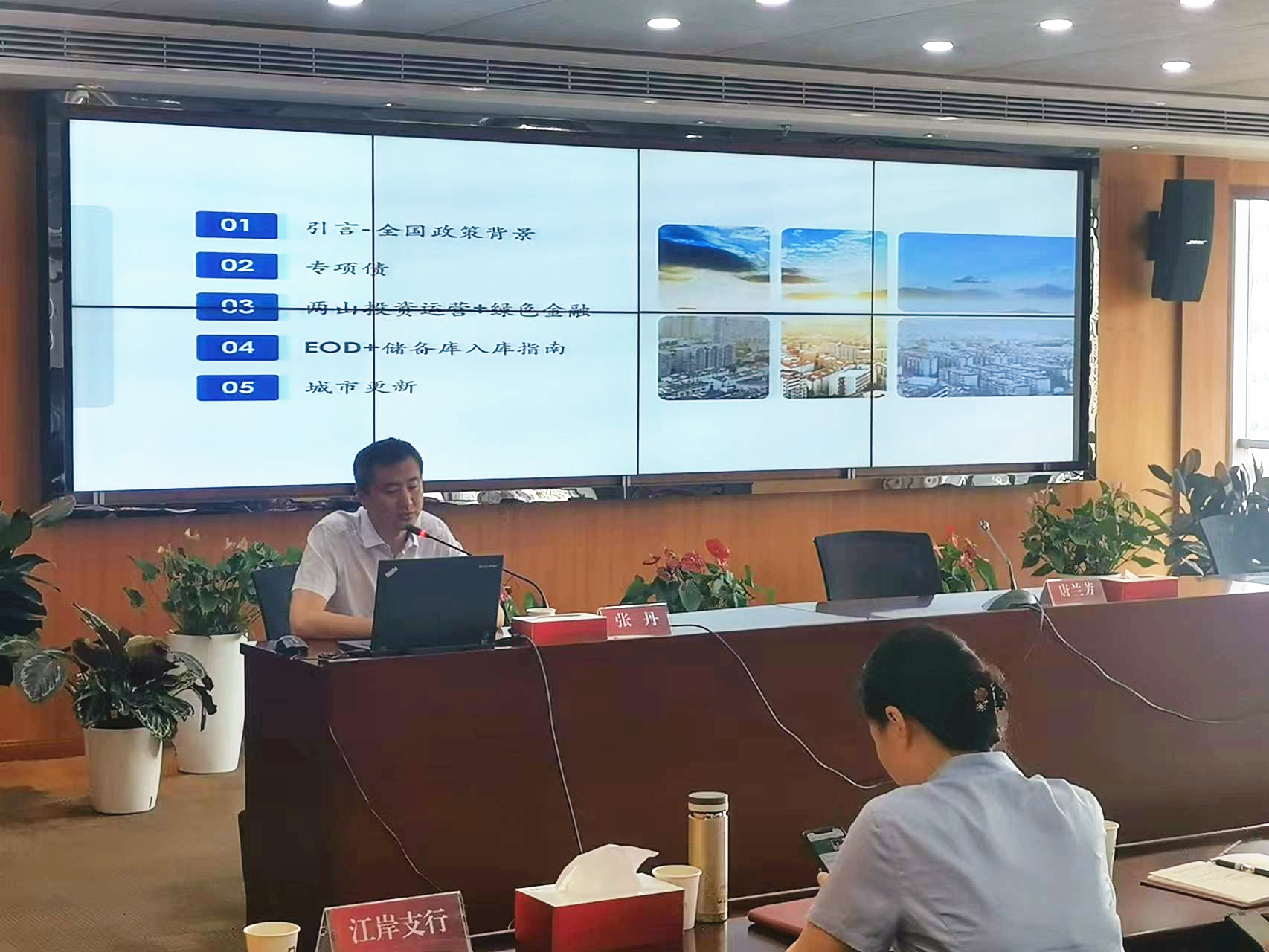2022年6月11日,湖北银行召开“武汉城区公司条线业务培训会”,永业行技术研发中心价值咨询技术总监张丹应邀就“专项债、绿色金融、两山投资运营、EOD及城市更新等相关业务”作专题交流培训。湖北银行武汉业务管理总部副总裁唐兰芳主持会议。