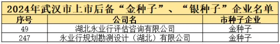 近日,2024-2025年度武汉市上市后备“金种子”“银种子”企业名单公布,永业行旗下湖北永业行评估咨询有限公司、永业行规划勘测设计(湖北)有限公司成功入选市级上市后备“金种子”企业,此前两家公司已入选省级上市后备“金种子”“银种子”企业。